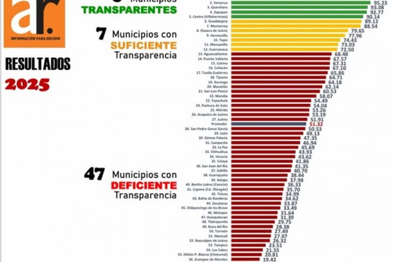 – De acuerdo con los resultados del Índice de Transparencia y Disponibilidad de la Información Fiscal de los Municipios, 2025