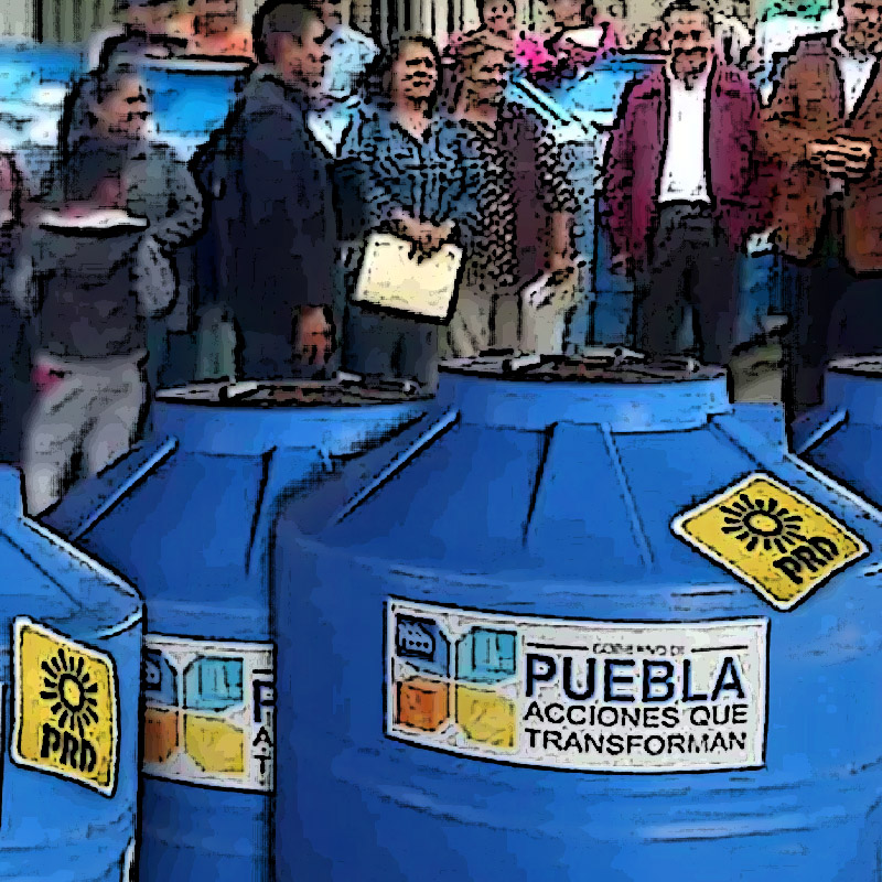 En la coyuntura del proceso electoral del 2016, el gobierno del estado repartió más de 57 mil tinacos pintados de azul panista, en los municipios con mayor número de habitantes inscritos en el padrón electoral.