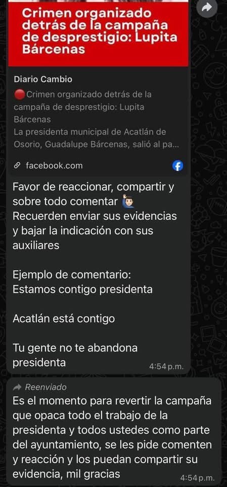 Pues con una nota del diario CAMBIO, los operadores de medios de la alcaldesa usaron whattsapp para obligar a funcionarios municipales a “lavarle la cara” a la Bárcenas.